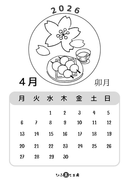 【2026年塗り絵カレンダー4月】無料ダウンロード