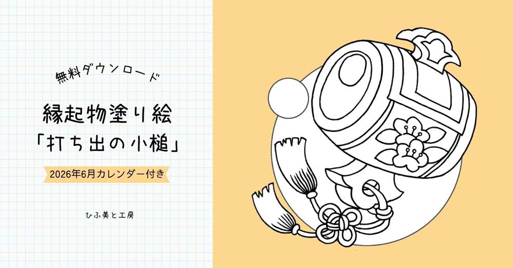 そんな方に向けて、「縁起物塗り絵カレンダー」を作りました。6月の縁起物は、「打ち出の小槌」です。ダウンロードは無料ですので、ぜひご利用ください。