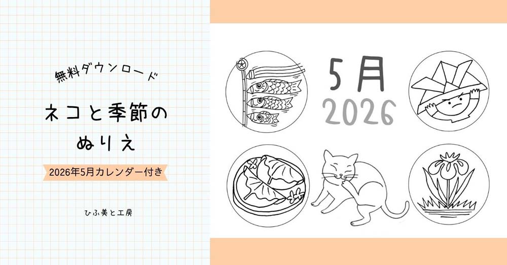 【ネコと季節のぬりえ】5月カレンダー付きダウンロード