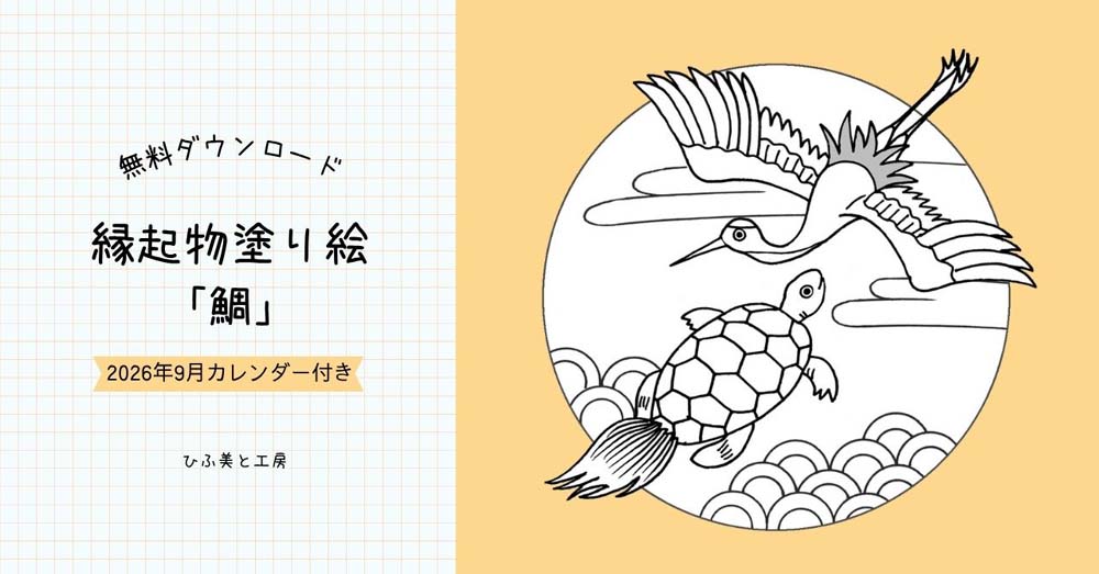そんな方に向けて、「縁起物塗り絵カレンダー」を作りました。9月の縁起物は、「鶴亀」です。ダウンロードは無料ですので、ぜひご利用ください。